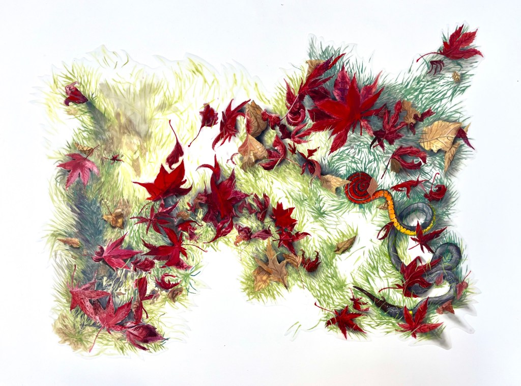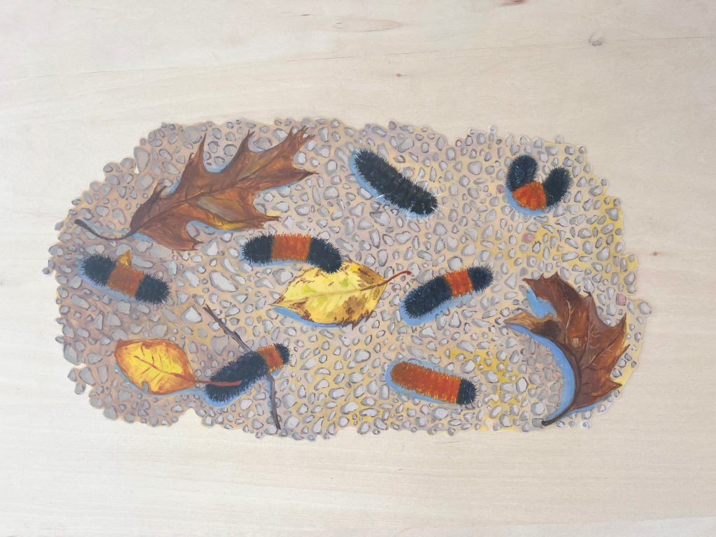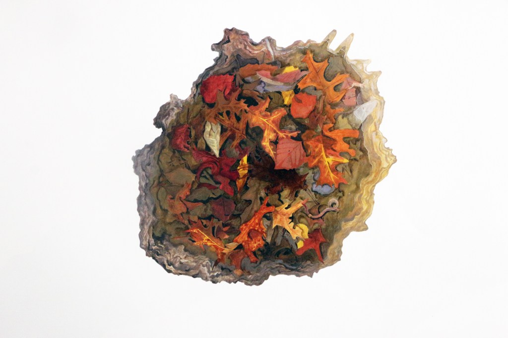 Accretion 2025 colored pencil and oil on dura-larAccretion (detail)Senescence 2024 oil on dura-larSenescence (detail)Oscillation 2024 oil on dura-larOscillation (detail)Fragmentation 2024 oil on dura-larClusters 2023 oil on dura-lar Clusters (detail)Fall Procession 2023 oil and conte on dura-larFall Procession (detail)